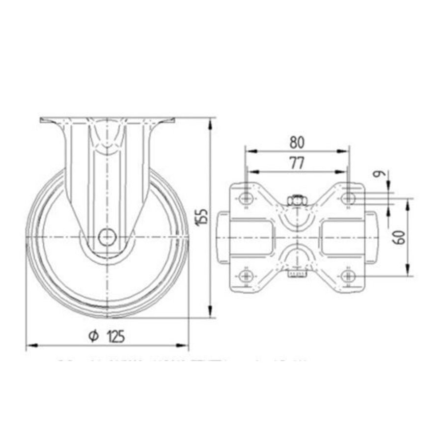 Bokwiel nylon 3NOP 125mm plaatbevestiging