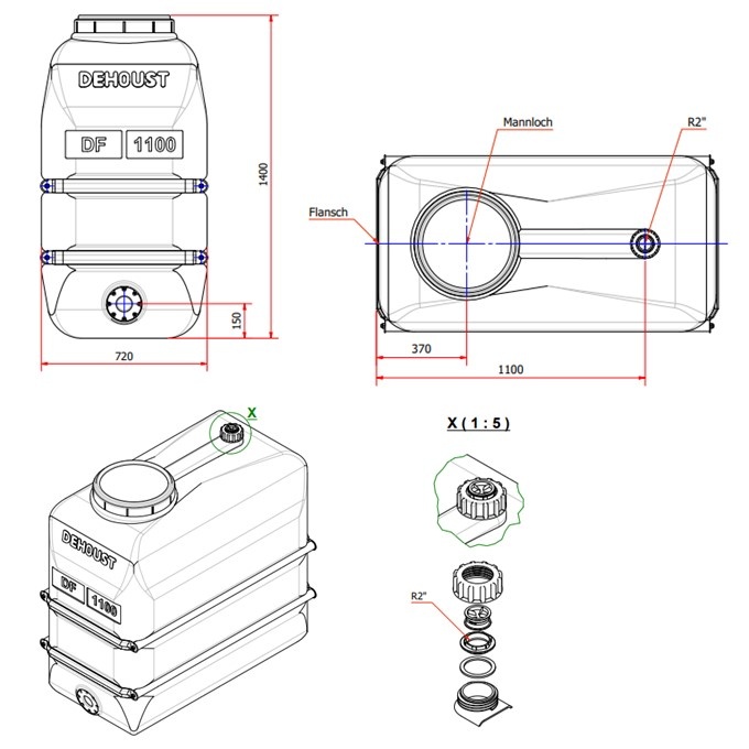 DEHOUST PE opslagtank 1100 liter DF zwart