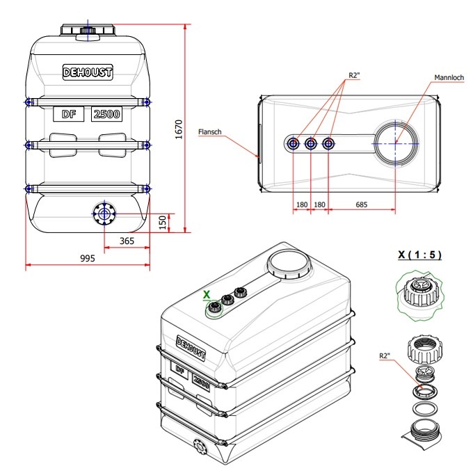 DEHOUST PE opslagtank 2500 liter DF wit