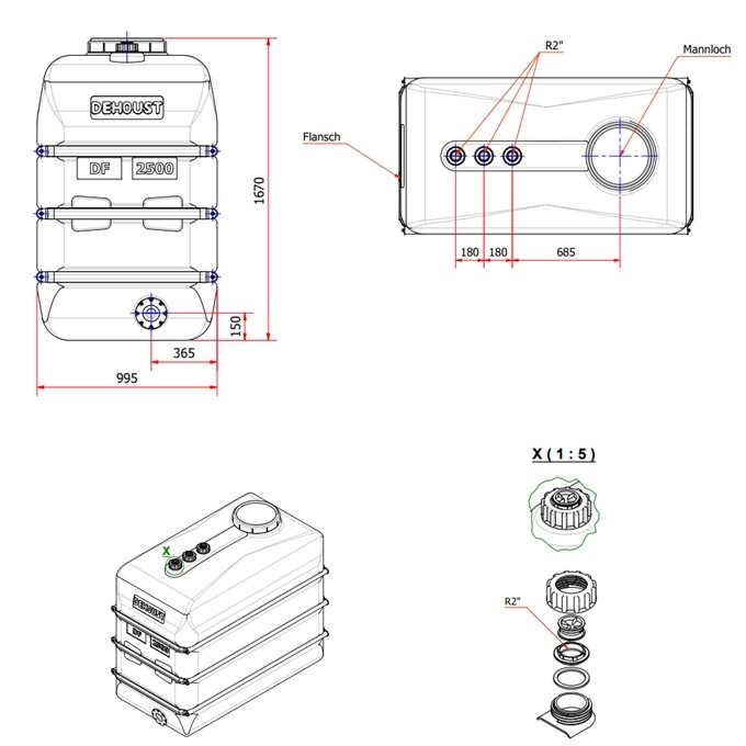 DEHOUST PE opslagtank 2500 liter DF zwart