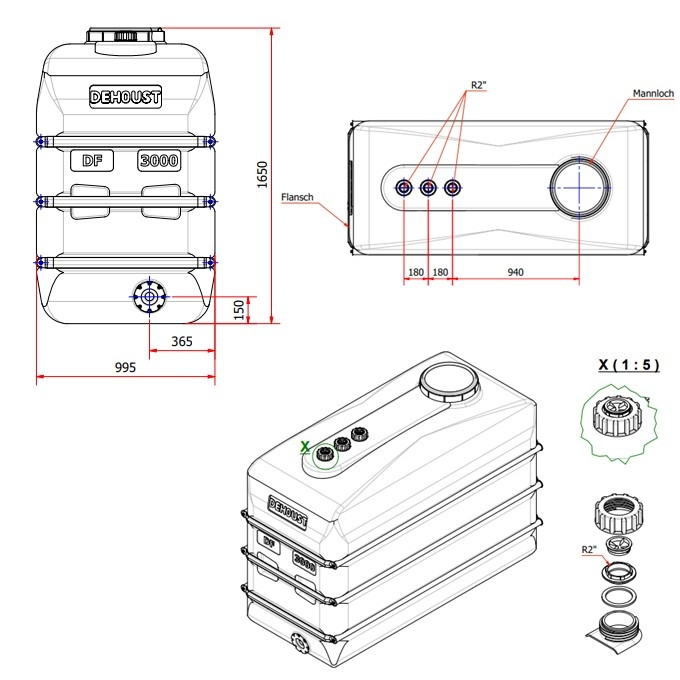 DEHOUST PE opslagtank 3000 liter DF wit