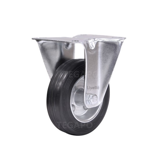 Wieldiameter 100 mm Bouwhoogte 128 mm Rijdend draagvermogen 70 KG Plaatafmeting 105x80mm Boutgat afstand 80x60mm Diameter boutgaten 9mm Vork materiaal Staal Band materiaal Zwart rubber Band hardheid Shore A 80 Velg materiaal Metaal met rollagers Wielas type Metalen as, bout bevestiging Temperatuur -20/ +60°C -