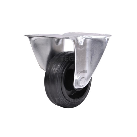 Wieldiameter 80 mm Bouwhoogte 104 mm Rijdend draagvermogen 70 KG Plaatafmeting 105x80mm Boutgat afstand 80x60mm Diameter boutgaten 9mm Vork materiaal Staal Band materiaal Zwart rubber Band hardheid Shore A 90 Velg materiaal Polypropyleen met rollagers Wielas type Metalen as, bout bevestiging Temperatuur -20/ +60°C -