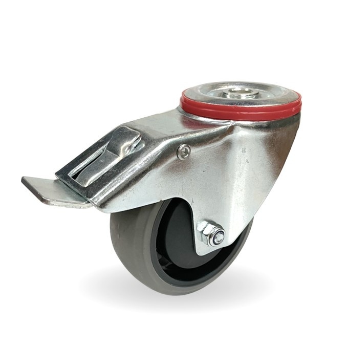 EdelRader zwenkwiel elastisch rubber grijs 125mm 2KO boutgat met rem