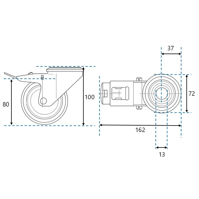 - Rubber zwenkwielen