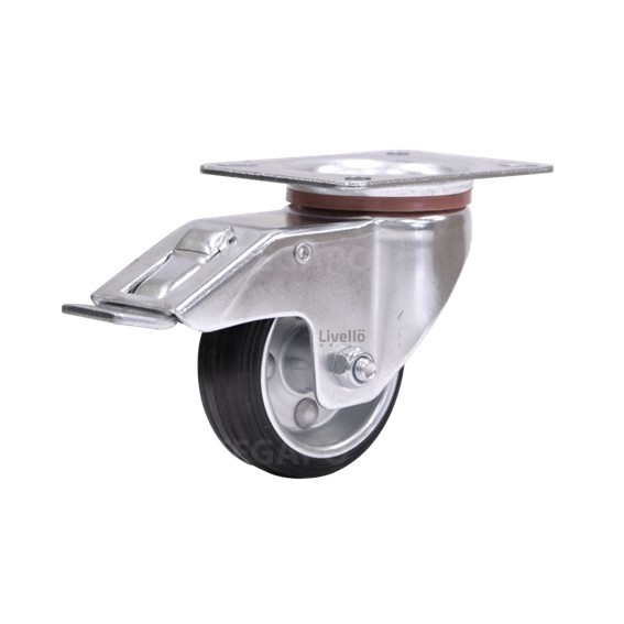EdelRader zwenkwiel rubber 80mm 2SO plaat met rem