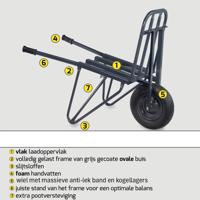 Bijzonderheden: vlak laadoppervlak - slijtsloffen - foam handvatten