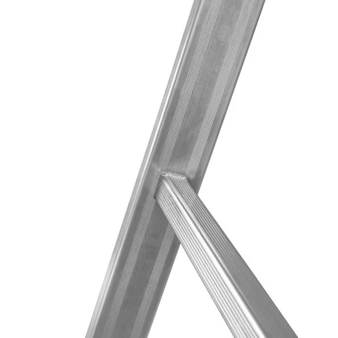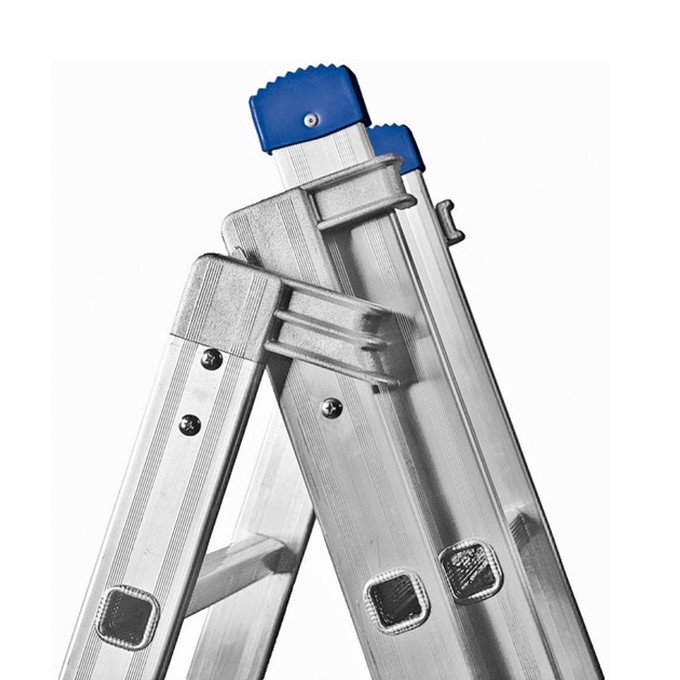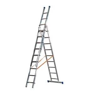Bijzonderheden: sportafstand 30 cm - sportbreedte 30 mmSemi-professionele 3-delige reformladder BASIC-line van blank aluminium met rechte ladderbomen en spreidbeveiliging met band. Deze 'glazenwassersladder' heeft een sportbreedte van 30 mm en een sportafstand van 30 cm. Deze 3-delige ladder is zowel als opsteek- als reformladder in A-stand te gebruiken. De verplichte stabiliteitsbalk wordt los bijgeleverd en is eenvoudig te monteren.