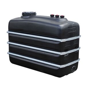 De zwarte PE-DF tanks zijn speciaal ontworpen voor buitengebruik en bieden bescherming tegen licht en UV-straling, waardoor algengroei wordt voorkomen – ideaal voor de opslag van regen- of bedrijfswater.