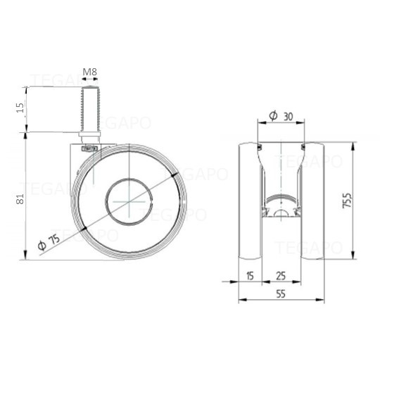 Wieldiameter 75 mm Bouwhoogte 81 mm Stilstaand draagvermogen 200 KG Rijdend draagvermogen 100 KG Bijgeleverde bevestiging Bout M8x15mm Wiel lager Precisie kogellagering Band materiaal Gespoten polyurethaan loopvlak Band hardheid Shore A 92 Band breedte 15 mm Krans diameter 30 mm Velg materiaal Polyamide Temperatuur -20/ +60°C Zwenkradius 65 mm Eigen gewicht 0,152 KG Keuringsnorm EN 12528 Garantie 5 jaar -