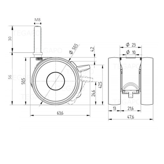 PAPU LOW wiel 50mm bout M8x30 met rem