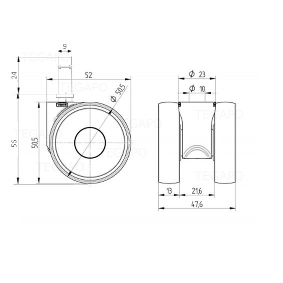 PAPU LOW wiel 50mm plug vierkant 16mm met rem