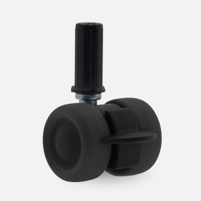 Wiel diameter 39 mm Bouwhoogte 47 mm Draagvermogen 60kg per compleet wiel Bijgeleverde bevestiging Ronde plug 15x36mm Wiel lager Glijlager Band materiaal Thermoplastisch zwart rubber loopvlak Band hardheid Shore A 87 Band breedte 12 mm Vloersoorten Parket, laminaat, tegels, plavuizen & overige harde vloeren. Krans diameter 15 mm Velg materiaal Polyamide Temperatuur -20/ +60°C Zwenkradius 45 mm Eigen gewicht 0,054 KG Keuringsnorm EN 12528 Garantie 5 jaar U heeft het enigste zwarte laagste meubelwiel gevonden van heel de Benelux. Een Duits product van topkwaliteit. Dit is een product wat alleen voor ons geproduceerd wordt. De Limited black uitvoering is speciaal ontworpen voor situaties waar geen hoge wielen gebruikt kunnen worden.