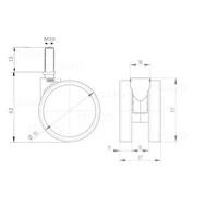 Wieldiameter 55 mm Bouwhoogte 62 mm Draagvermogen 80 KG Bijgeleverde bevestiging Bout M10x15mm Wiel lager Glijlager Band materiaal Gespoten polyurethaan loopvlak Band hardheid Shore A 92 Band breedte 11 mm Krans diameter 18 mm Velg materiaal Polyamide Temperatuur -10/ +40°C Zwenkradius 45 mm Eigen gewicht 0,12 KG Keuringsnorm EN 12528 Garantie 5 jaar Let op: Is niet geschikt om onder bureau/eetkamerstoel te plaatsen -