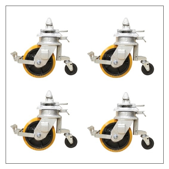 Zeer geschikt voor het verplaatsen van zeecontainers en ISO containers. Deze zwaarlastwielen kunnen onder containers geplaats worden door middel van de ISO twistlock die boven op het wiel gemonteerd is. Dit wiel is voorzien van een steunwiel waardoor u makkelijk het complete wiel onder de container kunt rijden. Na plaatsing onder de container klapt u het steunwiel op. Door middel van de hendel die er aan vast zit kunt u het wiel verankeren onder de container in de corner castings (op de hoeken van de container). Doordat het een dubbel wiel is heeft u een betere drukverdeling en rolweerstand met het verrijden.