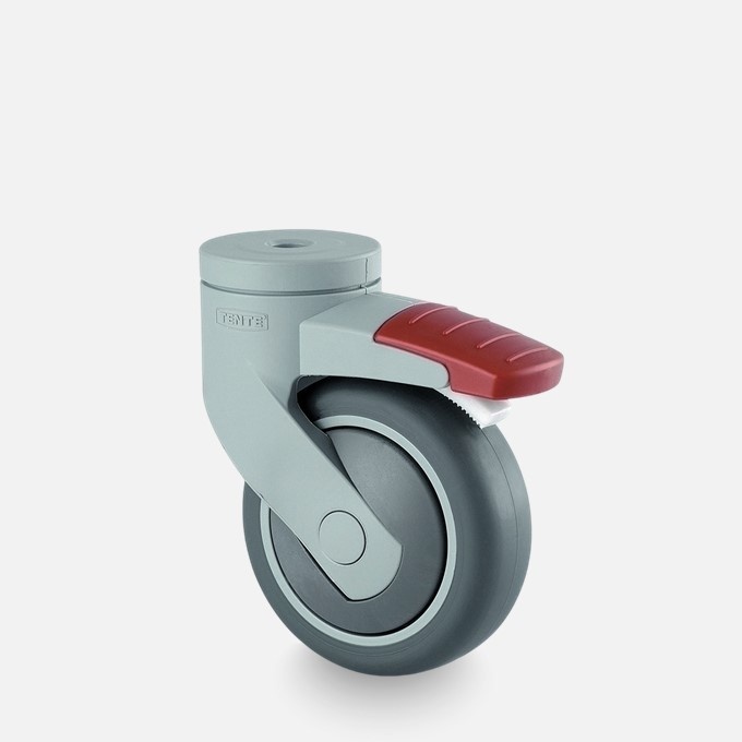 Wieldiameter 75 mm Bouwhoogte 103 mm Draagvermogen 150 KG Wiel lager Precisiekogellager, afdekkap voor hygiëne/vuilopbouw Band materiaal Zacht, Tenteprene thermoplastisch rubber Band hardheid Shore A 87 Band breedte 25 mm Krans diameter 44 mm Stiftgat diameter in wiel 10 mm (TGP10 aansluiting) Velg materiaal Hoogwaardig synthetisch materiaal Temperatuur -10/ +40°C Zwenkradius 73 mm Eigen gewicht 0,154 KG Keuringsnorm EN 12530 Garantie 5 jaar Dit wiel heeft een TGP10 aansluiting. De volgende aansluitingen kunt u allemaal op dit wiel plaatsen.