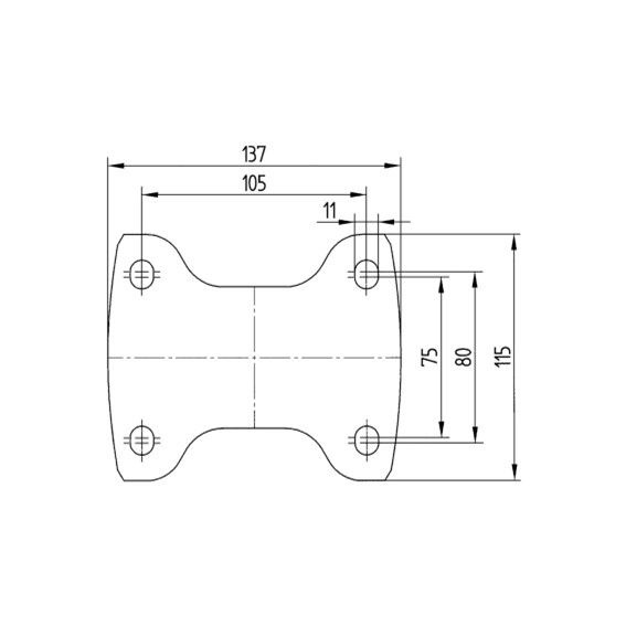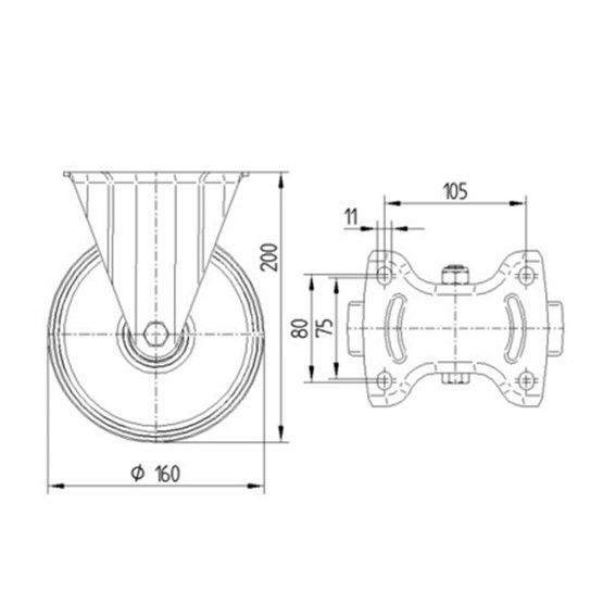 TENTE Bokwiel RVS 160 elastisch rubber KO plaat