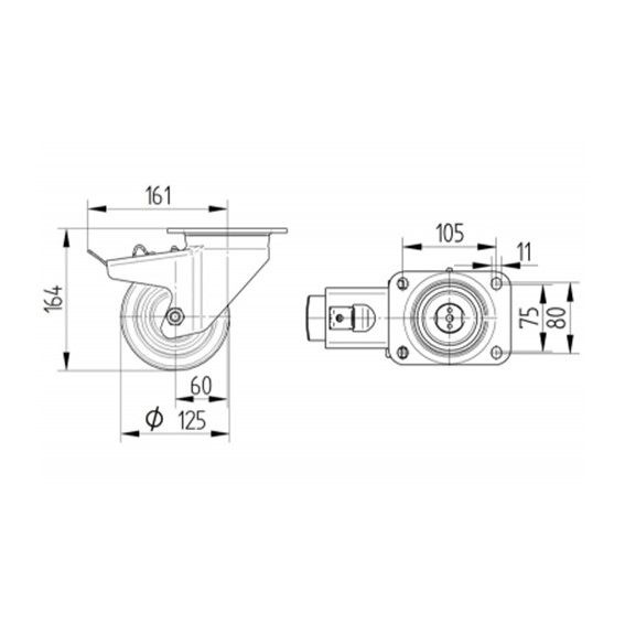 TENTE Zwenkwiel rubber 125 5SO plaat
