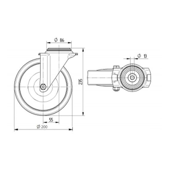TENTE Zwenkwiel rubber 200 3SO boutgat