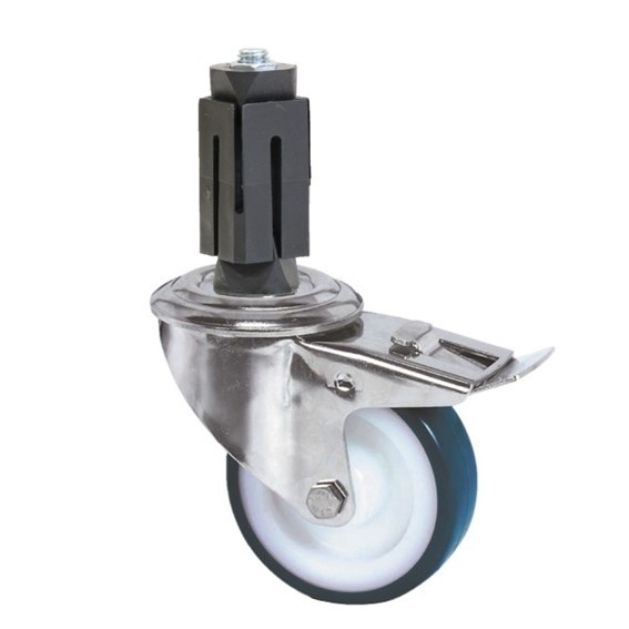 Dit wiel is voorzien van een kunststof uitzetbevestiging die in een ronde buis past met een binnendiameter van 21,5-24mm. Het zwarte gedeelte drukt u in de ronde buis. Doormiddel van een inbussleutel draait u via de onderzijde van het zwenkwiel (bij het kransgedeelte) de bout aan waardoor de bevestiger uitzet. Deze kunt u stevig aandraaien, zodat het kunststof gedeelte tegen de binnenwand van de ronde buis zal klemmen en het zwenkwiel een sterke montagebevestiging krijgt.