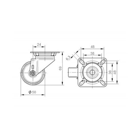 Wieldiameter 50 mm Bouwhoogte 69 mm Rijdend draagvermogen per wiel 50 kg Stilstaand draagvermogen per wiel 100 kg Vork materiaal Roestvrijstaal Vork lager Dubbele kogeldraaikrans Band materiaal Niet-strepende thermoplastische rubberband Band hardheid Shore A 85 Band breedte 19 mm Velg materiaal Polypropyleen met glijlager Wielas type Metalen as, bout bevestiging Temperatuur -20/ +60°C Zwenkradius 49 mm Eigen gewicht 0,182 KG Keuringsnorm EN 12532 Garantie 5 jaar 7470PJO050P40 Dit wiel is van het gerenommeerde merk TENTE, dat een onbetwiste leider is in de wereld van wielen. Dankzij uitgebreid onderzoek en een schat aan expertise is dit wiel vervaardigd volgens de strenge EN 12532 normen. Dit betekent dat het een hoogwaardig en officieel gecertificeerd product is. Elk onderdeel van dit wiel is vervaardigd uit de beste materialen, waaronder geharde kogelbanen en hoogwaardige kogellagers. Het resultaat is een wiel dat uitmuntende prestaties levert en een lange levensduur garandeert. Kies voor TENTE en investeer in kwaliteit die zichzelf bewijst.