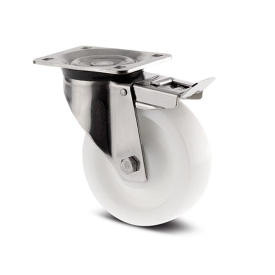 TENTE Zwenkwiel RVS nylon 200 8NO plaat met rem
