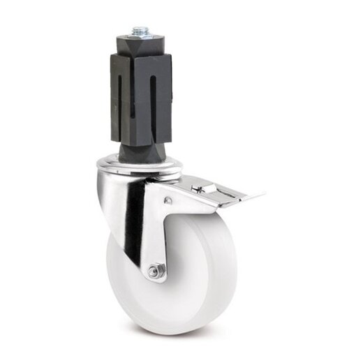 TENTE Zwenkwiel RVS 125 elastisch rubber KO vierkante koker 32-35mm met rem