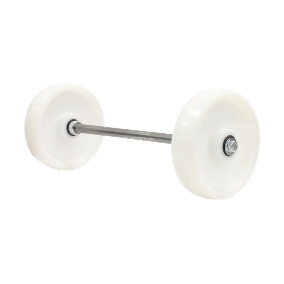 Wieldiameter 200 mm Draagvermogen 300-500 KG Band & velg materiaal Polyamide Lager type Rollager Wielas type 20mm metalen as, bout bevestiging M12 Afstand tussen de wielen (stelringen) 85,6 cm -