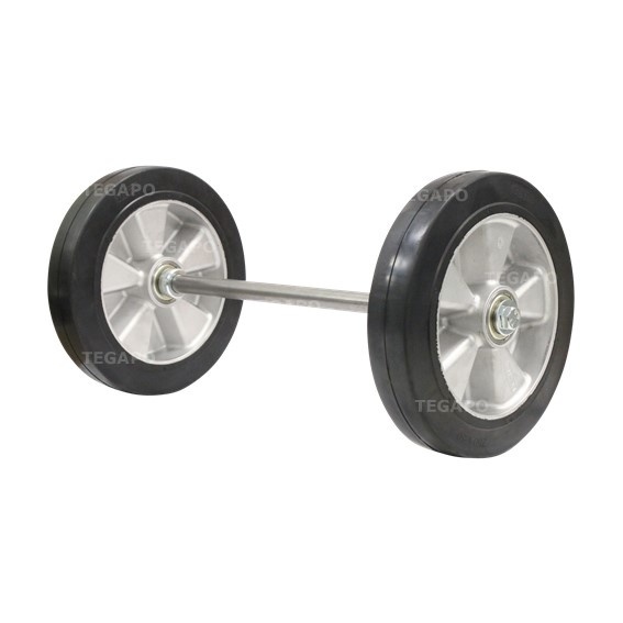 Wieldiameter 250 mm Draagvermogen 500-800 KG Band materiaal Elastisch rubberband Velg materiaal Aluminium Lager type Precisiekogellagers Wielas type 20mm metalen as, bout bevestiging M12 Afstand tussen de wielen (stelringen) 105,2 cm -