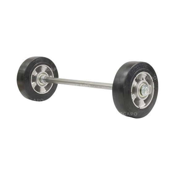 Wieldiameter 160 mm Draagvermogen 500-800 KG Band materiaal Elastisch rubberband Velg materiaal Aluminium Lager type Precisiekogellagers Wielas type 20mm metalen as, bout bevestiging M12 Afstand tussen de wielen (stelringen) 75,2 cm -