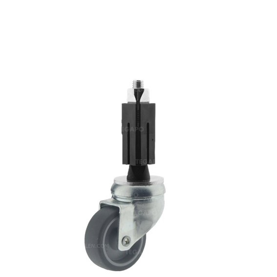Dit wiel is geschikt voor het rijden op harde vloeren zoals beton, tegels, natuursteen enz. Uitermate geschikt voor zowel binnen als buiten. Deze zijn voorzien van een kunststof uitzetschroef bevestiging: Geschikt om de wielen te bevestigen en te kunnen klemmen in een inwendige kokermaat van 24 tot en met 27mm. Door middel van een inbussleutel kan deze van de onderzijde van het zwenkwiel (bij het kransgedeelte) opgedraaid worden om het kunststof gedeelte te klemmen in de koker. Deze kunt u stevig aandraaien, zodat het kunststof gedeelte tegen de binnenwand van de koker zal klemmen en het zwenkwiel een sterke montagebevestiging krijgt.