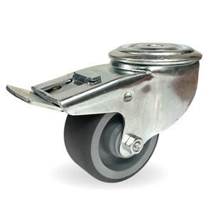Zwenkwiel nylon 3NOP grijs 80mm boutgat met rem