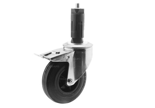 Zwenkwiel rubber 100 3KO ronde buis 31-35mm met rem
