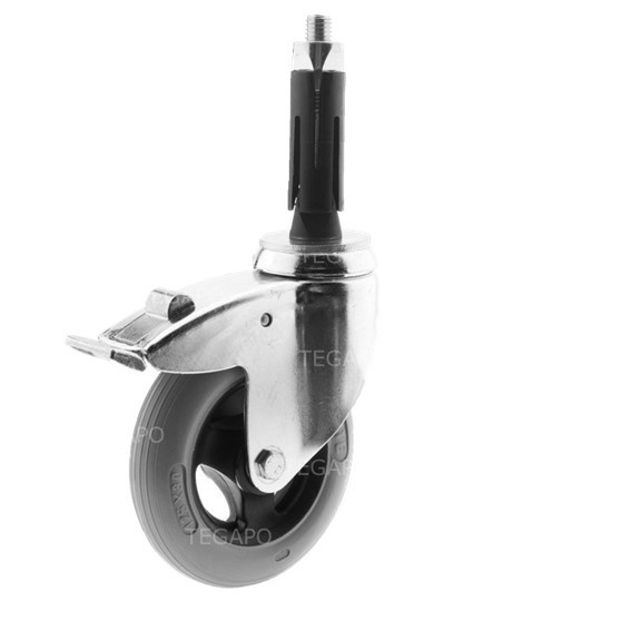 Zwenkwiel unilast rubber 125 3KS ronde buis 24-27mm met rem